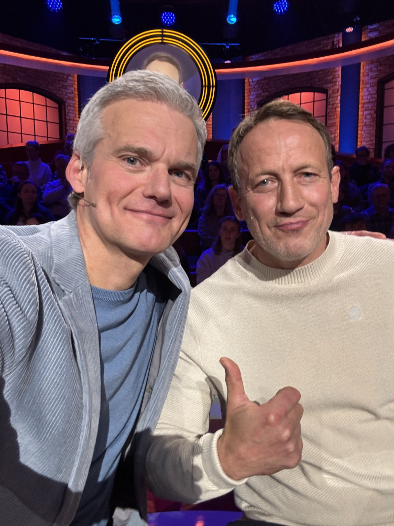 Meine Kollegin Susanne Daubner und ich mal zur gleichen Zeit im Fernsehstudio – das passiert nie. Außer bei „Wer weiß denn sowas“, dem ARD-Quiz mit Kai Pflaume. Dort waren wir zum Tagesschau-Duell zu Gast und durften versuchen, die tückischen Fragen aus verschiedenen Kategorien zu beantworten. Susanne hatte Bernhard Hoëcker an ihrer Seite, ich spielte mit Wotan Wilke Möhring. Wir gingen zwar schnell in Führung, gerieten aber genauso schnell wieder in Rückstand, sodass es bei der Masterfrage ganz am Ende spannend wurde. Sie lautete: „Welcher Sportler ist unter dem Spitznamen ‚The Great One‘ bekannt?“ Knifflig, aber unter den drei möglichen Antworten lagen wir mit Wayne Gretzky richtig – und konnten doch noch das Blatt wenden. Schön, für die Zuschauerinnen und Zuschauer, die sich hinter uns versammelt hatten. Denn die gingen jeweils mit ein paar mehr Euros vom Hof. Das wichtigste aber: es war wieder in großer Spaß!